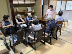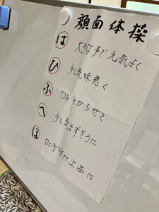 午前中のレクでは、顔面体操と銘打って、はははは、ひひひひ、ふふふふと大声で笑う皆さんの姿がありました。