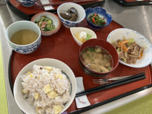 本日の昼食も、十六穀米の栗ご飯で味覚から秋を感じていただきました。
