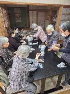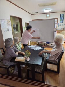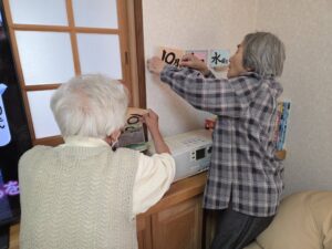 時にはカレンダーの貼り替えをお願いしたり、体操やレク、脳トレなど、楽しみながら、身体や頭を使っています。